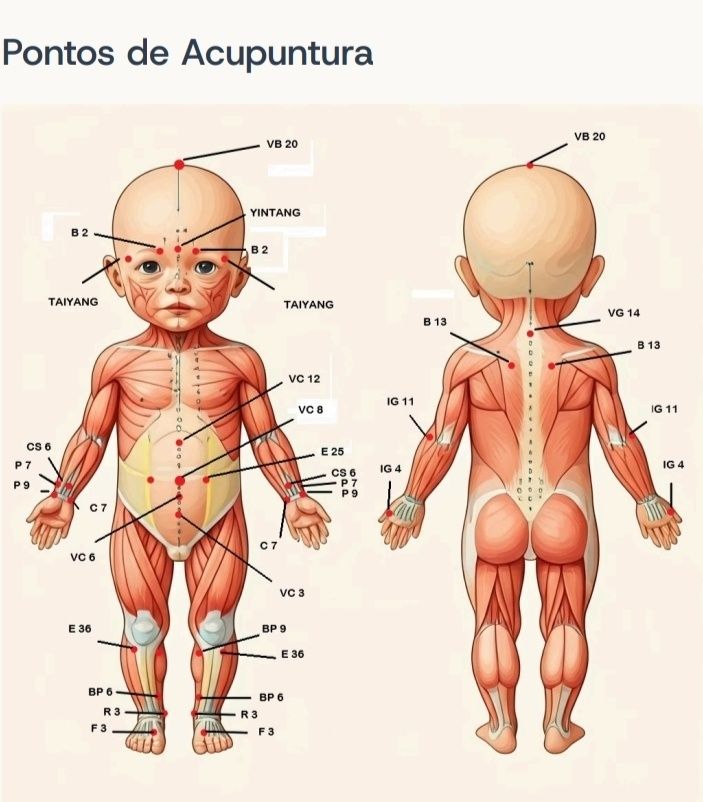 - Pontos de acupuntura seguros e adaptados para bebês